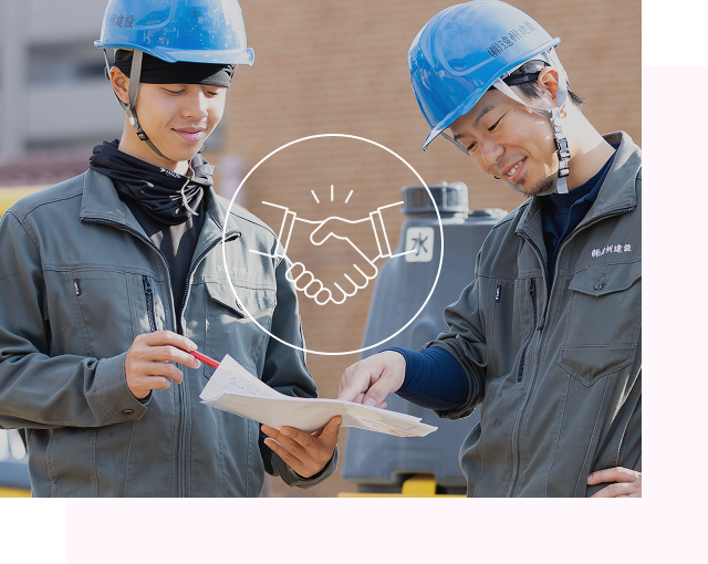 遠州建設では、新しく仲間になる社員が安心して成長できるよう、メンター制度を導入しています。